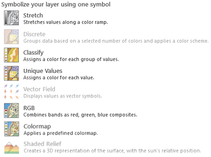 For raster layers, GeoCat Bridge currently supports these symbolizer types: