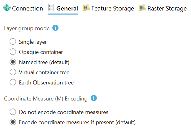 The Feature Storage settings determine how Bridge should process all vector datasets.